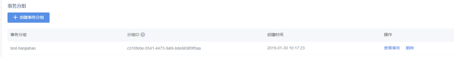 事务分组创建成功后会生成需要使用分组ID(groupId)作为分组的唯一标识,后续在配置文件中需要使用该ID。