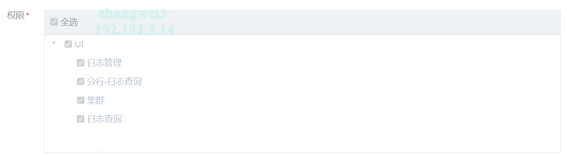 创建完成角色后可以为角色进行权限设置,可以针对不同的模块设置不同的权限。选择“全选”即代表用户当前模块下所有的权限。