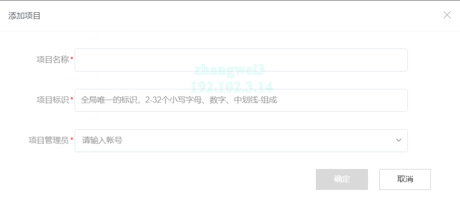 创建项目时需要指定项目的名称、唯一标识和管理员。其中项目名称是用于页面展示项目的名称,项目的名称在租户下不可重复。项目标识是租户全局唯一标识、创建后不可修改,项目管理员是项目下拥有最高权限的用户,授权为项目管理员的用户需事先登录平台。一个租户下可以添加多个项目。