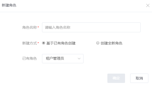 新建的角色可以以当前存在的角色作为模板创建新角色。新建的角色权限在创建时与已有角色相同,模板权限变化时新角色的权限不变。或者创建没有任何权限的新角色