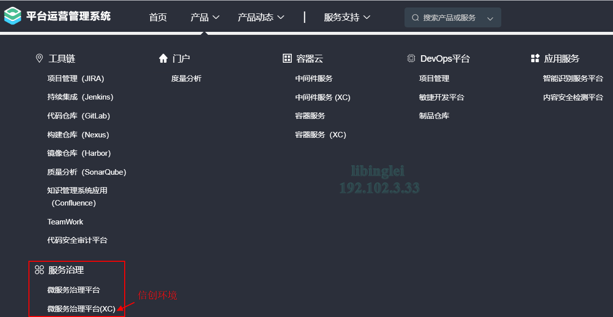 微服务治理平台的用户在平台运营管理系统登录,登录成功之后点击对应的菜单跳转到微服务治理平台。登录地址:inte-platform.chinapost.com.cn
