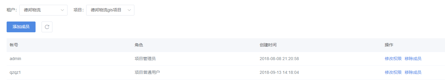 平台管理员和租户管理员可以管理租户下的项目,添加项目下的成员,同时可以修改相应项目的名称。