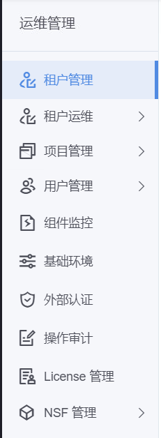 进入运维管理页,可看到二级功能导航,如下图所示。